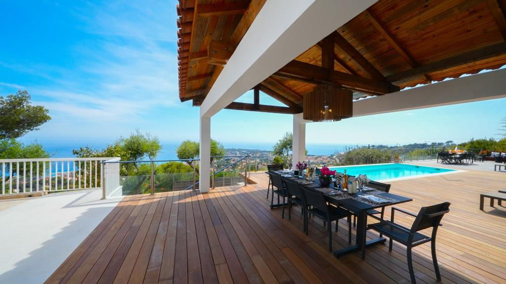Perched along the dazzling Côte d’Azur, just 5 kilometres from Monaco and Menton, this stunning villa offers a seamless blend of sophistication and serenity. Designed to provide an unforgettable experience, the property boasts 350 m² of elegant living space across two levels, set on a 1,500 m² south-facing plot. With panoramic sea views and a sunlit garden featuring a private pool and chic pool house, this villa offers the ultimate Mediterranean retreat. Inside, the home is fully furnished and equipped with modern amenities, including a stylish living room, dining area, and high-end kitchen. The 5 en-suite bedrooms accommodate up to 10 guests, ensuring privacy and comfort for family gatherings or luxury getaways.